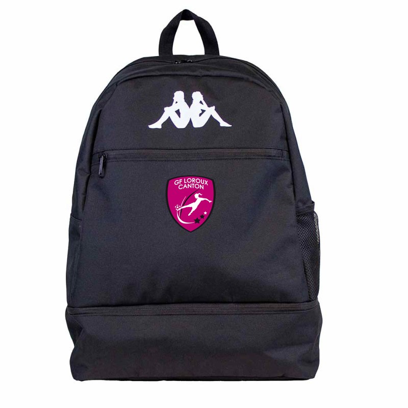 Ouverture principale et poche frontale zippée, caisse rétractable pour compartiment chaussure zippée, bretelles matelassées réglables et poche latérale en tissu mesh, logo omini sur le devant.